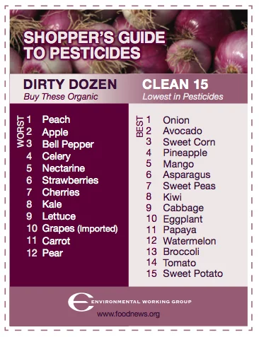 The Environmental Working Group decided to answer that question by studying the pesticides present on 47 different fruits and vegetables. From that, they released what they called the “dirty dozen” – 12 foods that you should avoid or buy organic whenever possible.